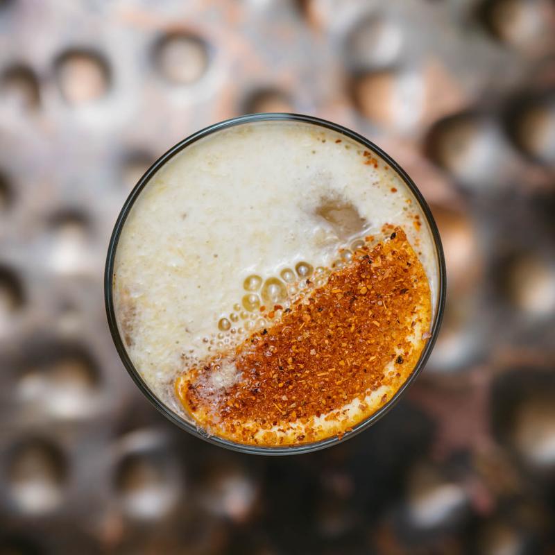 mezcal, serrano infused blanco tequila, lime, avocado, coconut, chili salt
